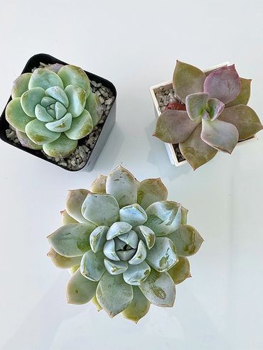 Watering: Like most succulent, Echeveria stores water and moisture in their thick leaves and stems. They do not require frequent watering and pretty much thrive off neglect. Its best to allow the soil to dry out completely between watering. I also would feel the bottom leaves to see if they are soft or firm and plump. If it’s firm, it does not need to be watered, if it’s starting to feel soft, then give it a nice good drink. Make sure you water the soil and not the rosette, allowing that water to drain through.