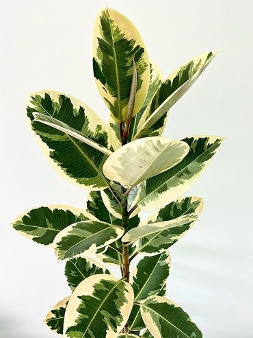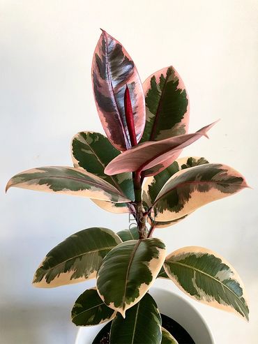Ficus Elastica also called the Rubber Plant is one of my favorite houseplants. They are part of the Ficus family, which also includes Ficus Lyrata also known as the Fiddle Leaf Fig, Ficus Altissima and Audrey. They are called Rubber Plants because the were use to make rubber and tires from their sap. There are a few varieties of Ficus Elastica. The Tineke being one of my favorite for it's beaurtiful watercolro art like foliage.